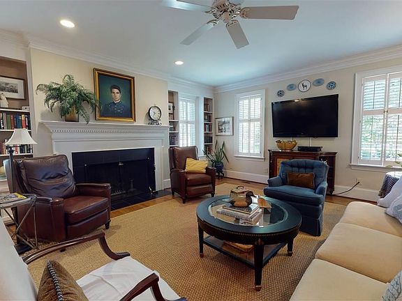 Fabulous "In Town" location! Elegant custom built Williamsburg home featuring a large formal living room with fireplace, dining room with corner cabinets, and large family room with fireplace and built-ins. Beautifully updated kitchen with large island, wolf gas cooktop, and custom cabinets. Sit in the sunroom or the large covered porch and enjoy the magnificent backyard designed by Robert Chestnut of Charleston. Fully fenced with sprinkler system on separate city meter. Portico with gas grill. Absolutely breathtaking!