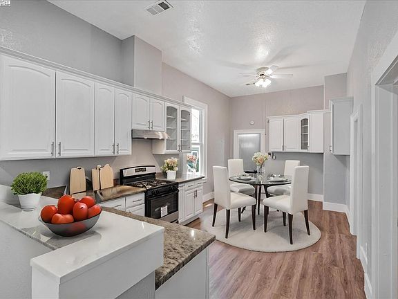 Recently renovated 2-story Victorian style gem located in the Prescott neighborhood in West Oakland offering a seamless blend of classic Victorian charm and modern comfort. Featuring 5 spacious bedrooms & 3 & ½ bathrooms over 2,076 square ft. The new LVP & tile flooring adds to the refined beauty of this home. This home features indoor laundry for maximum convenience. The upstairs include 3 bedrooms and 1 bathroom. The updated kitchen is a chef's dream, complete with sleek granite countertops and & a new oven. Step in, relax & entertain in the massive bonus room area with tons of natural sunlight pouring through all the windows. But wait, there's more! Venture downstairs to discover 2 bedrooms and 2 & ½ bathrooms plus additional bonus room and an extra closet for additional storage. This versatile space opens up exciting possibilities for customization to suit your lifestyle. Outside, the low-maintenance yard provides a perfect oasis for relaxation in comfort in the shade provided by this home's covered patio. Short 6-block stroll to the convenient BART station, offering an easy 10-minute commute to San Francisco. 9 blocks from Raimondi Park, Home of the Oakland Ballers. Neither the seller nor listing agent guarantee property details. Buyer to verify.