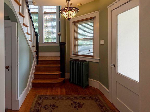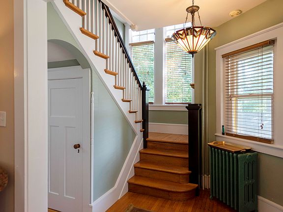 This Jim Thorpe home is stunningly beautiful! A truly one of a kind for sure. You'll love the view from the front porch but just step inside the double entry doors and you'll find a gorgeous hidden treasure! The foyer features open staircase, original floors-bright & cheerful. The living room features rounded front wall, beautiful floors, & orig pocket door. Stepping into the formal dining room, you'll find orig built-in china cupboard & bench seating, hardwood floors & fireplace-a most inviting room! The kitchen has tall cabinets & engineered quartz countertops, orig built-in corner cupboard. Also on 1st floor, a new half bath w/orig folding door! The 2nd floor features 3 bedrooms, a dressing room, den & gorgeous bathroom w/ orig stain glass window BUT the 3rd floor reveals an awesome mas