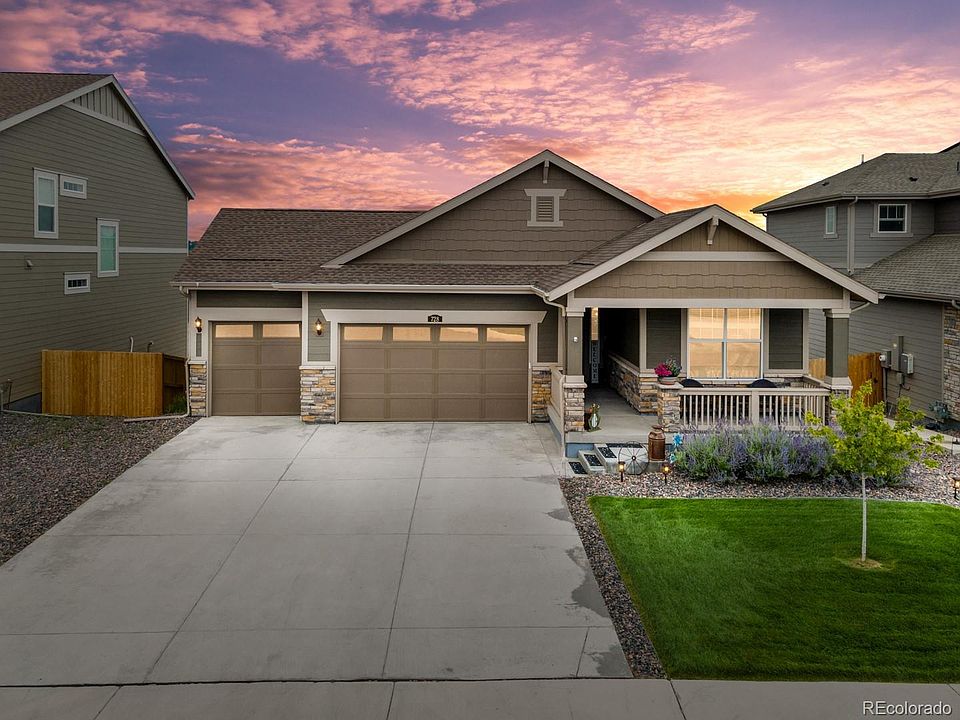 Beautiful new ranch style Graham with 2 covered decks, 9 foot ceilings, featuring 2 bedrooms, 2 bath & bonus room or office, 3 car garage, door by laundry room leading to garage, unfinished WALKOUT basement. Gorgeous upgrades and finishes throughout including luxury vinyl plank floors, stainless steel appliances, beautiful pendant lights over the island and a beautiful fireplace & fan in the family room. You will enjoy watching the sunset in the evenings from the covered upper deck. There is also a bottom deck to add to your backyard fun! This home is energy efficient and has modern conveniences that you will enjoy for years. Close to dining, shopping, entertainment and other amenities. Don't wait to see your new beautiful home and the sunsets are stunning off your beautiful West facing deck!