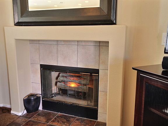 Great location for this 2 bedroom, 2 bathroom + den home with no monthly home owners association fees (HOAs). The open concept layout has a kitchen island looking out at the living room and back yard. The walk-in pantry has numerous shelves for food and extra small appliances. The living room has a wood fireplace that currently has an electric insert for convenience. The large master bedroom has an en suite and separate toilet/shower room. Walk-in closet has built in shelves and hanging space. There is a separate laundry room with upper cabinets for additional storage. This home has been updated inside and out with new paint, fans, and coffered ceilings. Garage is a two car garage with a third shorter bay for golf cart, ATV, or a nice size workshop. Backyard is fully fenced, low maintenance, and has a covered patio.