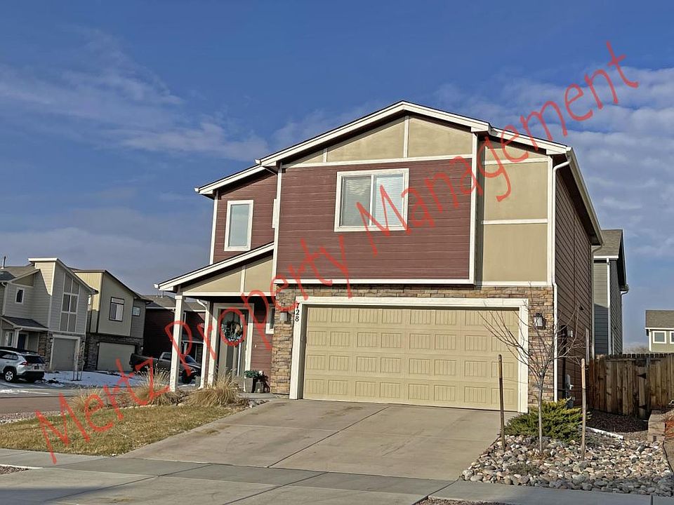 Newer, beautiful 2-story with central air conditioning features plank vinyl flooring, carpeting in the bedrooms, and a wide-open main-level floor plan. The kitchen has black appliances plus a large pantry. Sliding back door opens to a small patio and fenced yard with automatic sprinkler system. Grand entryway, upstairs laundry room. All bedrooms are upstairs and have walk-in closets, the primary suite has a double vanity and an oversized shower. Trash and recycling are included. Convenient location provides easy access to Peterson and other military bases, airport, downtown, and everything along the Powers corridor. Mature, fixed pet(s) welcome with prior approval and additional refundable deposit of $300 per pet + $35 per month pet rent. Please include pictures and vet records with application. No smoking/vaping. No marijuana. Available now. Mandatory disclosure: Prospective tenants have the right to provide Landlord with a current Portable Tenant Screening Report, as defined in Colorado Revised Statutes 38-12-902(2.5); if so, you will not be charged an application fee or charged any fee for Landlord to access or use your Portable Tenant Screening Report.