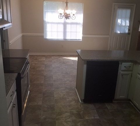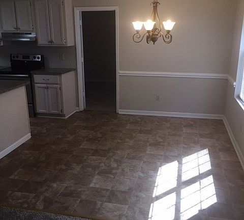 Great room with fireplace. Split bedroom floor plan. Slate tile flooring, vinyl and new carpet. Master bathroom has garden tub. Fans throughout. Covered front porch and a back patio. 620 or better on credit score. No evictions, foreclosures, or bankruptcies in the past 3 years. No vicious breed dogs. No dogs larger than 45lbs. A maximum number of 3 pets per home. No section 8 vouchers. $40 cash application fee. $300 non-refundable pet fee.