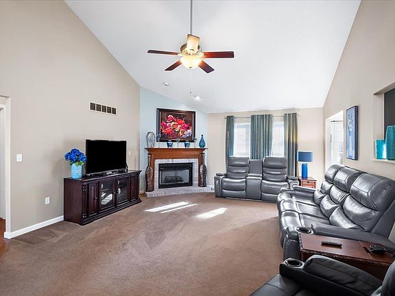Back on market!! No fault by seller!! This stunning home features an open-concept floor plan with a spacious family room, vaulted ceiling, and a cozy wood-burning/gas fireplace. The updated kitchen boasts solid surface countertops, custom cabinets, and a dining area perfect for gatherings. Enjoy a mix of wood floors and newer carpeting throughout. The updated guest bath and luxurious primary bath feature a tiled shower and whirlpool tub for a spa-like retreat. Professional closet organization systems enhance storage in select closets and the pantry. The fully finished basement offers two non-conforming bedrooms, a full bath, and a large family room, providing ample extra living space. Step outside to a newer maintenance-free composite deck, ideal for outdoor entertaining. This home is move-in ready and waiting for you!