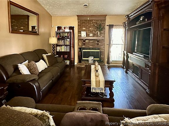 This beautiful contemporary home is conveniently located just minutes from Ft. Liberty, shopping, and parks. Luxury vinyl plank flooring ties together the open floor plan of the sunken living room containing a cathedral ceiling and wood burning fireplace, with the raised dining area, thus creating a great space for relaxing or entertaining friends and family. SS appliances in the kitchen. The back yard has privacy fencing and a metal storage building. Unpermitted, unheated space not included in sq footage includes another bedroom and the laundry area adding an additional 361 sq foot to this home. Fireplace has never been used by current owners. Dogs are present, they are contained in a separate area in the back yard. Schedule showings through Showing Time.