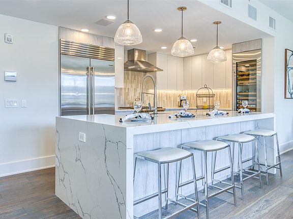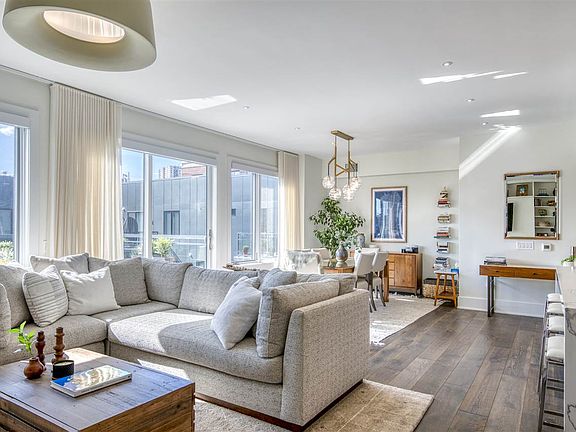 Absolutely stunning 3 bed 3 bath top floor home with 3 PRIVATE OUTDOOR SPACES including a rooftop deck with a built in kitchen ready for Sept 1st occupancy. Built in 2018, this modern industrial concrete design by Minervini Vandermark architects features an open floor plan with a terrace off of the master bedroom, and another terrace off of the living and dining room. Additional features include beautiful built in cabinetry and a kitchen w/ a wolf range, wine center and sub zero refrigerator. Fall in love with the designer tile by Porcelanosa and Walter Zang. Near floor to ceiling windows and top floor unit letting in lots of natural light. Top of the line hardwood floors throughout. Also enjoy peace and quiet, as this unit sits in the back of the building away from all the street noise. Home is pre-wired for state of the art electronics and sound. Deeded indoor garage parking as well as an electric car charging station on site. Building amenities include a back-up generator, green roof and a secure package room. Matterport Tour upon request. Available asap.