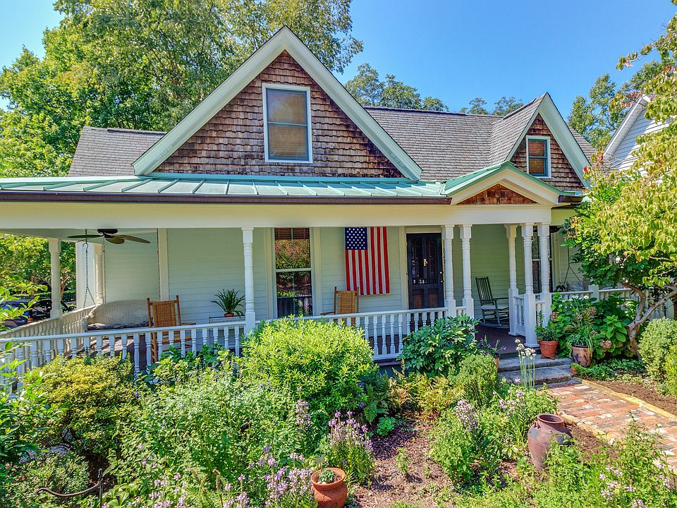 3 br. being used as a 2br, historic, charming & meticulously maintained by long time owners! Perennial colorful gardens in bloom yr. round, HUGE 918 sq. ft garage w/410 sq. ft. finished room over top (INCOME POTENTIAL), 10 ft. ceilings, detailed woodwork, custom stain glass & dine in kitchen. Wrap around front porch, back screened porch and large side deck. Upstairs is open w/alcoves and nooks throughout that can be used as office, playroom & sleeping areas (see sketch). FP's are "as is".