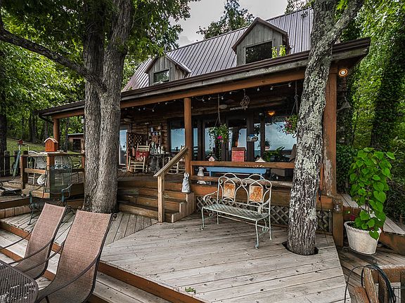 ORIGINAL VIRGIN BLUFF ON TABLE ROCK LAKE BY BRANSON, MISSOURI! This Property offers magnificient HUGE YEAR-ROUND PANORAMIC VIEWS and a very charming Cabin with numerous Decks featuring a sweeping Cathedral Ceiling with a huge Floor-to-Ceiling Native Stone Wood-Burning Fireplace with tons of natural light, Granite Countertops, a Jetted Tub, etc. There is also a detached Studio to use as an Office/Guest House plus 29.2 Acres m/l with 38 Lakefront Lots with Community Water! Great potential for an Estate Home! Galena Address, Reeds Spring Schools, Cape Fair Phones, DSL Internet, within 12-15 minutes of Branson West. Boat Launching at the end of Longbend Road (it is across from the Cape Fair Marina so you can boat over to eat at the Restaurant, have an Ice Cream Cone, even gas up your Boat).