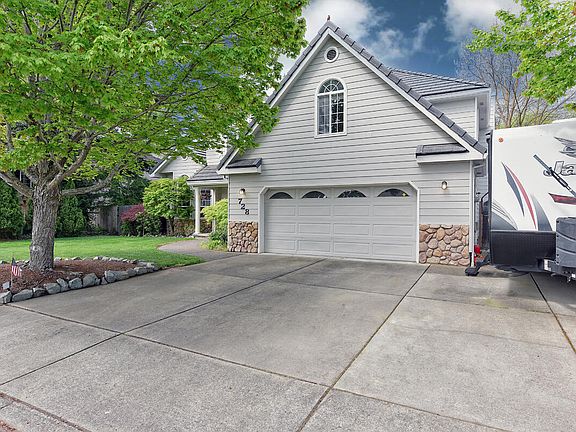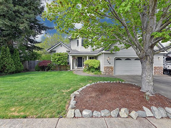 Impeccably maintained home nestled on a quiet cul-de-sac of Central Point! This beautiful 3 BD, 3 BTH home offers a perfect blend of elegance & comfort, showcasing meticulous upkeep & luxurious updates throughout. Step inside & be captivated by hardwood flooring that grace the spacious living room & dining room. The kitchen is a chef's dream, boasting sleek granite countertops & stainless steel appliances. French doors beckon you to a private patio with delightful pergola, creating an idyllic setting for entertaining guests! Expansive primary suite features a generous walk-in closet & a jaw-dropping ensuite with a grand two-person shower & large soaking tub! Two sink vanities exude sophistication, complemented by elegant tile flooring. The backyard oasis boasts plenty of space to garden & lush landscaping which provides a serene backdrop! Ample RV parking adds convenience & flexibility to your lifestyle. Don't miss the opportunity to make this extraordinary property your own!