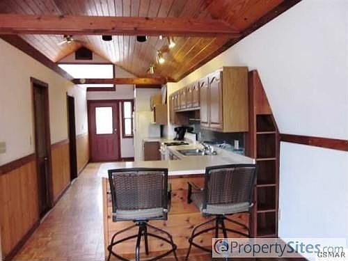 TWO HOMES FOR THE PRICE OF ONE! Live in one & rent the other to help pay for itself! Situated on 2 PARTIALLY WOODED ACRES. Nice, large concrete parking area yet plenty of grass & trees. CREEK on property as well. Homes sit on a knoll. Conveniently located to shopping yet in the country. SITE BUILT HOME consists of 1 bedr/1 bath w large kitchen which includes frig, stove, microwave. Cathedral ceiling w tongue & groove & exposed beams. Nice sized decks on both sides of home. OVERSIZED 2 CAR GARAGE under living area with laundry room which includes washer/dryer & workshop area. MANUFACTURED HOME is 3 bedrm/2 bath w split bedrm floor plan. Includes frig, range, washer/dryer. Heat pump only 8 yrs old. Features shown in MLS are for both homes. Owner financing available with approx 15k down. Call for details. Seller has moved & both homes currently have renters. APPOINTMENT REQUIRED! All measurements approximate.