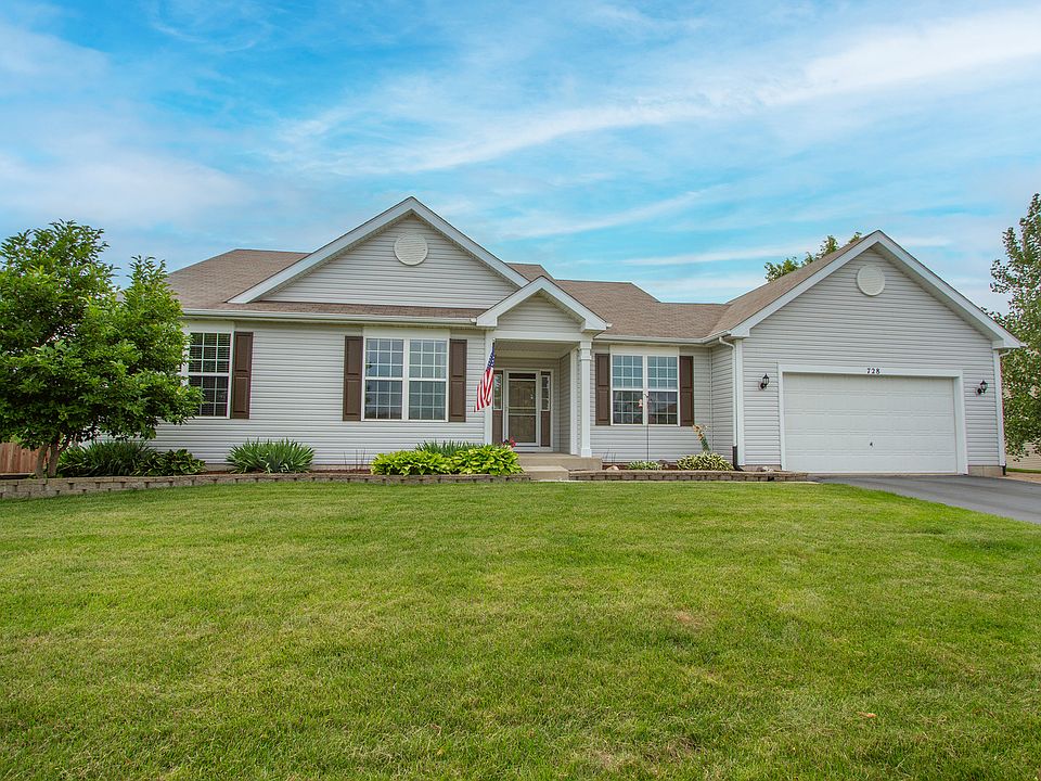 Nothing to do but move into this sprawling 3 bedroom ranch in desirable Tuscany Woods. This home features a open floor plan with a large great room that opens to the kitchen and dining area~ perfect for entertaining! The kitchen boasts 42 inch cabinets, granite counters, a pantry cabinet, and a dining area with slider to the patio. First floor den. Convenient main level laundry room with cabinets and a sink. Down the hall showcases a master suite with walk-in closet and en-suite bath with double sinks, soaking tub, and separate shower. There are two additional bedrooms and a full bath. Add even more living space by putting your finishing touches on this extra deep pour walkout basement. Outside, you can relax on the deck with retractable awning or the brick paver patio. Located near parks, schools, restaurants, and easy interstate access. Great home in a great location!