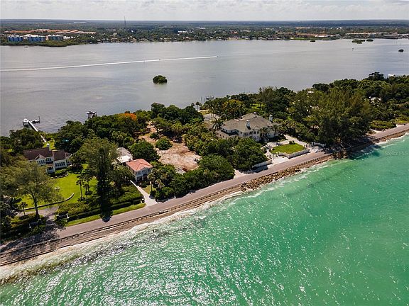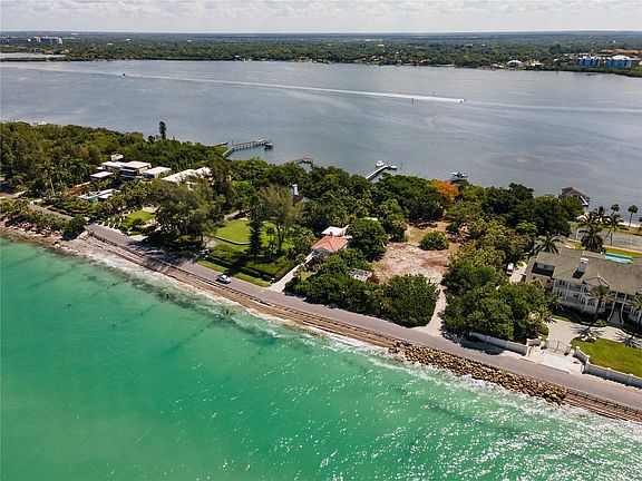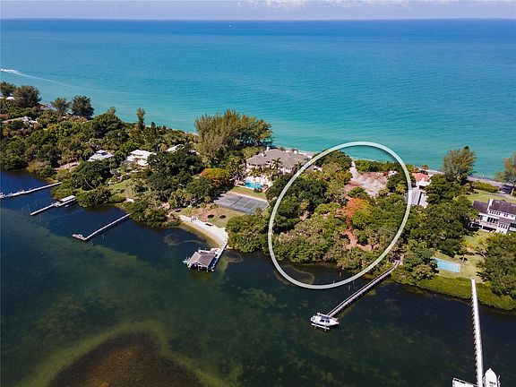 A remarkable opportunity presents itself with this 1.5 acre gulf-to-bay Lot zoned RE-1 on North Casey Key with 150 feet of shoreline on the bay and on the gulf. That's not all: a 7,000 s.f. +/- residence, plus small guest house, has been designed and submitted to the State of Florida DEP for permitting. This means all of the work required to submit a State permit has been done for you on this designed home, saving many hours and steps in the building process. Here are the specifics for the residence submitted to the State of Florida for permitting: A lovely Cape Cod style home with generous porches overlooking both the beautiful Gulf of Mexico and the Intracoastal Waterway on the bayside, 5 bedrooms, 5 full baths plus 2 half baths, elevator, 2 laundry rooms, 2 great room/tv rooms, office, 4 gas fireplaces, 2 beverage service areas (in Living room and outdoor kitchen areas), 4 car garage, elevated infinity pool, expansive pool deck and outdoor entertaining space, loads of storage, guest cottage with downstairs storage for water sports equipment, gracious gardens, ample courtyard guest parking area, and much, much more! A beautiful bayside dock has also been designed. **Seller is making available all of their due diligence, including the county's letter of noncontravention, landscape plan, and architectural plans for interested buyers.** This is the largest vacant parcel presently available on Casey Key. Don't miss out on such an exclusive property.