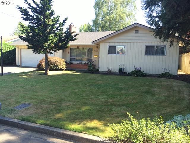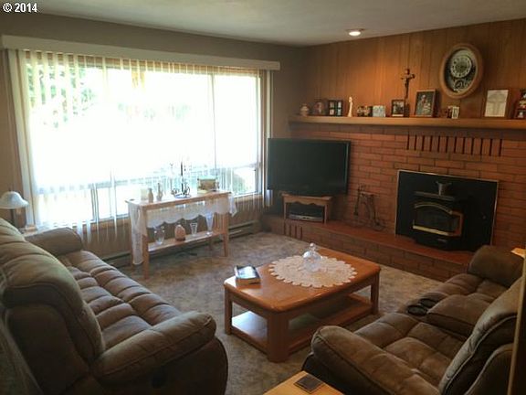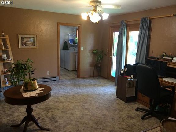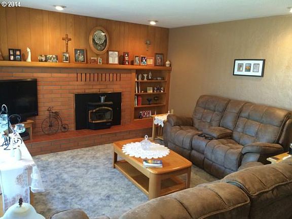 Well maintained ranch style home. Large fenced backyard, covered patio with new outdoor carpeting. New interior paint. Tile countertops in kitchen, pine cupboards. Ceiling fans in bedrooms. Laundry room with large sink. Pellet stove in living room with generous brick hearth. Close to schools. Includes Fridge, Washer/Dryer and Microwave.