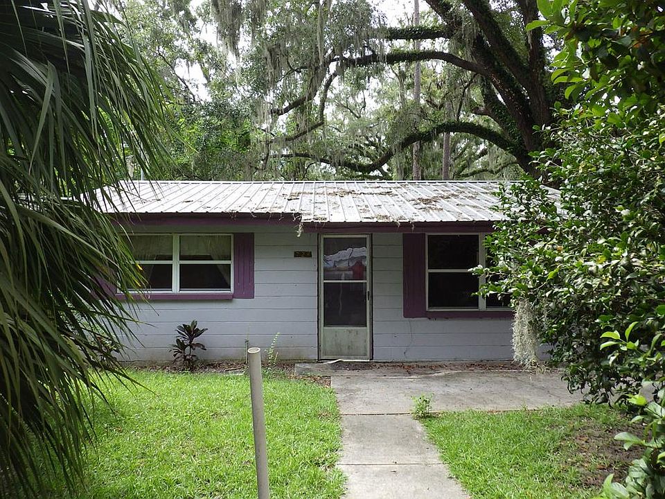 Great starter home or potential rental property. This 2/1 block home has a metal roof. The current floors are all ceramic tile. Kitchen needs a little work but does include a microwave hood. The yard is filled with nice plants and fruit trees. The corner of the lot is framed by a century old Live Oak. Walking distance to both the elementary & middle-high schools.