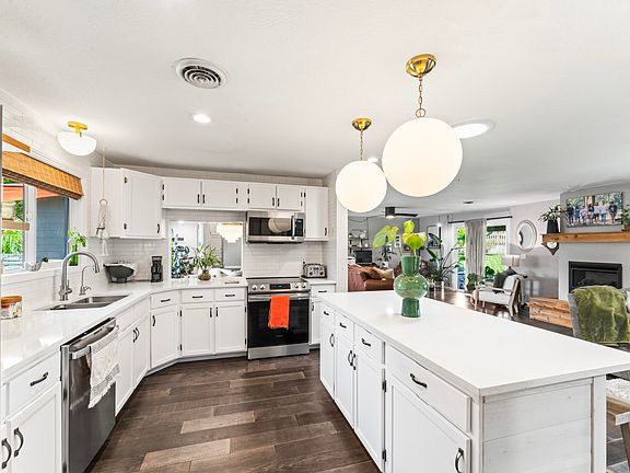 Contemporary 4br/3ba remodeled home located in the desirable NW Grants Pass. Home boasts modern comfort living and an open floor plan inside/out for entertaining. Kitchen features stainless appliances, floating shelves, quartz countertops and a generous island. Solar tubes and ample windows provide natural lighting to the engineered hardwood floors and accent walls throughout. Master bedroom has a slider to backyard and custom step in glass shower with champagne bronze dual rain shower heads & herringbone tile. A courtyard entry and koi pond greet you upon entering the home. The secluded backyard offers a sizable lawn, raised garden beds on drip and a covered patio with stamped concrete, recessed lighting, ceiling fans & outdoor kitchen. The 2 car garage has a ½ bath for your outdoor entertaining needs and a gated side yard for additional trailer parking/storage. Solar power system, fully landscaped yard & sprinklers. All information provided is deemed reliable but is not guaranteed.