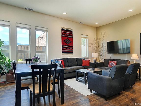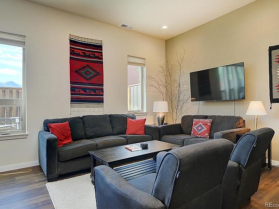 This newer contemporary condominium has been gently used as a second home and is well maintained. With a main floor primary bedroom, full bathroom, central air conditioning and forced air heat, the condo is easy to enjoy all year round. Some subtle accent wall painting and under and above cabinet lighting have enhanced the space from its original build. The kitchen features an island with sink and dishwasher, and room for bar stools on the other side of the open concept floor plan. There is plenty of room for a large dining table and spacious living room furniture. All bedroom closets are walk-in style. Two bedrooms, a shared bathroom with individual sinks and the washer/dryer closet are located upstairs. A sliding glass door takes you outside to the fully landscaped back yard, with views of Methodist Mountain to the south. Designated one car space parking, with additional visitor parking available. These units are zoned commercial with residential or live/work use.