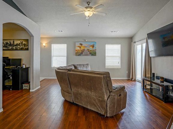 Multiple offers received. Single Level Dr Horton Home in Northern Meadows Neighborhood of Rio Rancho. This property features an amazing open floor plan with vaulted ceilings, gas fireplace, and laminate wood floors in living area + all 3 bedrooms. Possible 4th bedroom or perfect office space for working from home. Kitchen features stainless steel appliances, kitchen island, and open dining space. Master bedroom is secluded w/ large private ensuite featuring a soaking tub and separate walk in shower and walk in closet. 2 car garage is oversized for storage + features backyard access door. Backyard has covered patio w/ gas stub out for your grill. You don't want to miss this property. Take a Virtual Walkthrough tour