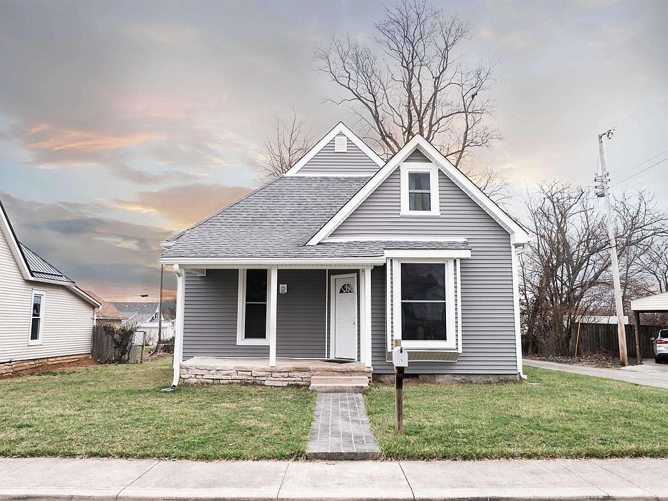 WELCOME HOME to your FOUR bedroom, ONE bathroom, renovated one and a half story! Enter through your front door into your spacious open concept living area which leads to your formal dining that is so inviting with the hardwood and beautiful, high ceilings. Continue on to your kitchen that comes complete with appliances and has some awesome concrete countertops. On the same floor, you will find your master bedroom as well as a second bedroom, full bathroom and spacious laundry room. Upstairs you will find an adorable oft area, which has your other two bedrooms. Outside, you will love your level backyard with a great concrete patio area perfect for relaxing and watching the kiddos and critters as well as a nice level gravel spot for off street parking. Home comes complete with a one year HSA home warranty with buyer seven star upgrade and could qualify for 100% USDA financing. Utility averages are: Duke ($100-$120/month), Vectren Energy ($110/month), Bedford City Utilities ($80/month). Come check out this charmer today!