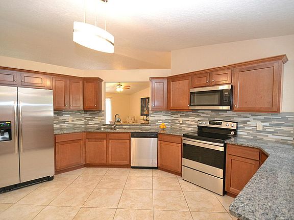 Big beautiful kitchen, open space, and laminate floors are the highlights of this newly renovated home! Kitchen has granite countertops, glass backsplash, crown cabinet molding, modern lighting, eat-in kitchen, pantry, and stainless appliances. Tiled showers, dual flush toilets and granite-top vanities in the bathrooms. Walk in closet and double sinks in the master suite. New AC, water heater, and garage door. Large back yard is bordered by wood privacy fence. Come live in this clean, conve nient, nice neighborhood with city waterwhat more could you ask?!
