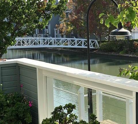 The Waterfront Cape plan overlooks a quiet and peaceful bay-front water canal crossed by gracefully designed pedestrian bridges. Upon entry, you will love the bright living room, open concept with vaulted ceilings, upgraded bamboo flooring throughout with granite slab fireplace. This recently remodeled-modern tri-level town-home has a dining room that overlooks the living room. The home features 3 bedrooms, 2-1/2 baths, living room and den, large pantry, kitchen, and baths have granite slab counters, stainless steel dishwasher, refrigerator, microwave, and gas range. Large private deck with serene water views, 2 car garage, washer and dryer hook-up, and plenty of storage. This complex has a pool and Jacuzzi. Public tennis courts are located across the street and there are plenty of trails near-by. Located in beautiful Redwood Shores walking distance to Oracle, in between Palo Alto and San Francisco, and just a 10 minute by car to the SF airport.