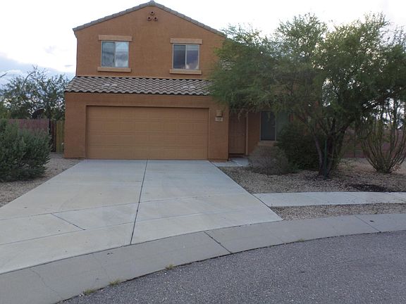 Fantastic 2 story - 3 bedroom/2 bath home with all of the extras. This beauty offers a spacious, bright floor plan with neutral palette. Ground floor with formal living/formal dining rooms, guest bath, kitchen with granite counters, all appliances, oversized panty, breakfast bar. All bedrooms are located on the second floor with a private loft. Low maintenace backyard that backs up to natural desert, wrap around pavers/patio with ramada - perfect for entertaining. Cul de sac lot, freshly painted, all tile flooring (bamboo in entry), ceiling fans throughout, A/C, 2 car garage, washer/dryer and so much more! Vail School District.