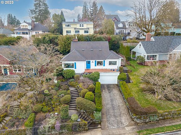 Straight out of a quaint English village, this home calls from the hills of South Burlingame. Lush mature landscaping leads to a great front porch with wrought iron detailing. Enjoy stunning views from large corner picture windows in the living room while cozying up next to the fireplace. Kitchen is as charming as the rest with lovely original touches, and the beautiful breakfast nook has even more vistas to enjoy! Huge formal dining room offers space for everyone. Two bedrooms on the main, plus a private primary bedroom and half bathroom upstairs. More classic details throughout including: picture molding, hardwoods, and clinker brick fireplace in the large downstairs family room. Lots of storage in the basement, plus a garage. Prime location in the heart of everything Southwest Portland has to offer: nature, shopping, dining, with easy access to freeways, OHSU, and Lewis & Clark College! [Home Energy Score = 3. HES Report at https://rpt.greenbuildingregistry.com/hes/OR10212991]