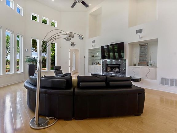 Only 8 miles from George Bush Freeway, this spectacular custom built modern home with sparkling pool/spa overlooks hole number one on premier golf course lot in prestigious Buffalo Creek Golf course located in resort style community complete with tennis courts, clubhouse, swimming pools, park, and just moments from beautiful Lake Ray Hubbard, great schools, shopping and entertainment. Attention to detail is obvious in every room of this incredible home with beautiful views from almost every room. Grand foyer overlooks impressive curved staircase and opens onto living area. Open floor plan features beautiful kitchen opening onto family room with custom built ins, stunning fireplace and banks of windows providing breathtaking views of grounds, pool and course. Gorgeous kitchen includes an abundance of custom cabinetry, granite countertops, island, and built in cooktop, dishwasher, microwave and oven and overlooks breakfast area. Butler's pantry includes wet sink and is located near kitchen and Florida Room. Downstairs master suite features lovely master bedroom with sitting area, tiered ceiling and views of pool and course. Master bath includes his and her vanities, custom cabinetry, garden tub, separate shower and walk in closet. Guest and auxiliary bedroom features roomy closets and opens onto full bath. Home office is complete with custom built ins and opens onto private balcony overlooking grounds, pool and course. Other amenities include Florida Room/bonus room, utility room, garage, circular drive and so much more. This won't last. You don't want to miss it! 2021-07-12
