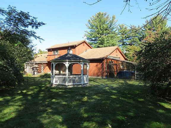Spacious Cape set on private, fenced 1.7 acre lot with apple tree and blueberry bushes. Enjoy your backyard from the Gazebo, deck, or attached sunroom which would make for a perfect garden room! Hot tub stays (as-is). Your choice of a first or second floor master bedroom. Second floor bathroom is just off the single bedroom and features a whirlpool tub. Open kitchen and dining area, Large living room with hardwood floors and fireplace. Brand new carpeting in the first floor bedrooms! Oversize two car garage enters in to first floor laundry/mudroom. Finished room in the basement.