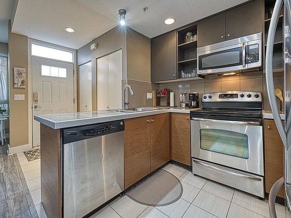 This one level 1 bdrm, 1 bath townhouse is located in the popular NOMA by Adera. This unit offers a functional open living room & kitchen that also includes a Murphy bed. Noma features a pretty interior courtyard and the complex contains a gym and small play area for children. 1 dog or 1 cat allowed. 1 parking and storage included and there is EV charging avail too! Centrally located within walking distance to all levels of schools, shopping, transit and trails. Unbeatable value here! Open house Sun 2-4.
