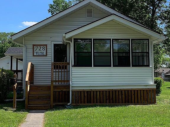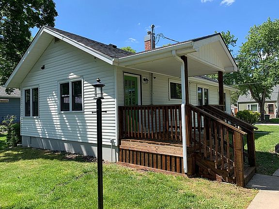 Just finished complete renovation with new roof, windows, doors, electrical, plumbing, water lines, central heat and air, insulation, foundation support, drywall, flooring and with completely new kitchen and bath! Large garage/shop. Enclosed charming front porch and covered side porch on large city lot!