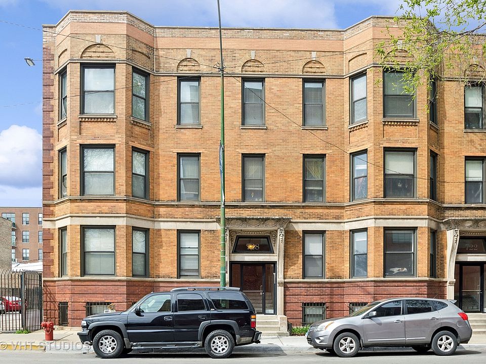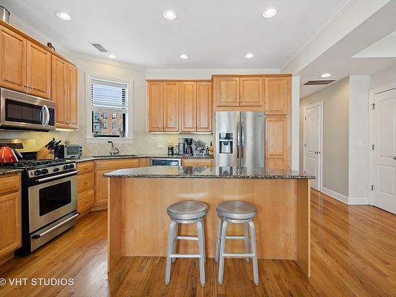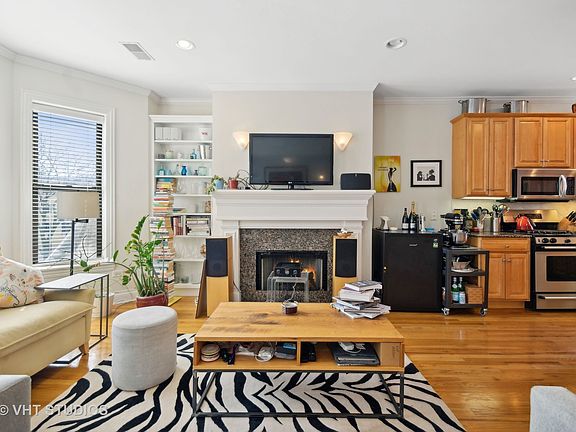 Spacious and bright top floor, jumbo sized 2 bed, 2 bath condo in Wrigley includes an oversized private deck and parking! Extra wide unit provides gracious great room offering an open kitchen, large living room, separate dining area, 9' ceilings and loads of natural light. Kitchen features tons of cabinets, stainless steel appliances, granite countertops and breakfast island. True primary suite with double vanity, granite counters, jetted tub and double wall closet. 2nd bedroom offers large walk in closet. Wonderful details and conveniences include bay windows, recessed lighting, in unit side by side laundry, central heat and air, fireplace with granite surround and wood mantel and hardwood floors throughout. Oversized 20' x 13' back deck provides phenomenal private outdoor space. One parking space and bonus full height storage room included in sales price. Low assessment building in an awesome East Lakeview location close to retail, restaurants, bars, Wrigley Field, parks, Lake Michigan, Lakefront trail and public transportation.