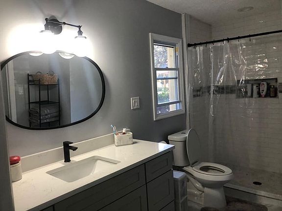 This updated and move-in-ready modern style home is located in the desirable Windsor Forest neighborhood and features 4 beds 3 baths, a brand new roof, new flooring through out, fresh bright neutral paint and trim on the exterior and interior. The kitchen has renewed with durable quartz countertops, bright white cabinetry, stainless steel appliances, double ovens and gas cooktop with stainless steel hood. The spacious master bedroom is conveniently located on the main floor and features walk in closet along with an updated en suite bath with double vanities, separate tub and shower. The expansive fourth bedroom or possible bonus room is located in the garage, it is freshly painted and has a large walk in closet. You will love the fabulous sun room located just off the living room that leads to the private backyard.