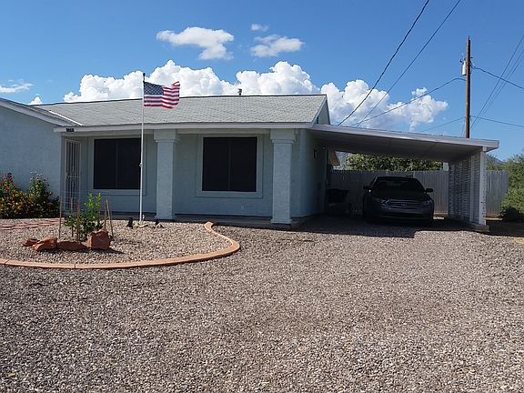 Very clean 3 bedroom, 1 3/4 bath, split floor plan on a large corner lot with full length, covered patio facing Mount Graham. Great room, breakfast nook and additional room that can be used as either formal dining room or den. New Allure wood laminate flooring throughout. Glass top stove with self cleaning oven, built in convection microwave, dishwasher, side by side refrigerator with ice maker and separate ice and water dispenser. New water softener and new reverse osmosis system for both kitchen sink and refrigerator water dispensers. Blinds on all windows and ceiling fans throughout (cloth draperies do not convey). Both living room plant shelves wired with eye level switches. Laundry room has lots of storage. Wired 16' by 16' workshop with outside 50 amp hook up for RV. Covered carport. Desert landscaped, with automatic watering system to raised flower beds, garden area and shade trees. Backyard has 6 foot privacy fence and additional fenced garden area. HVAC under annual maintenance agreement with Advanced Air. Vivint home security system which can be monitored and controlled remotely. Must see! Priced below market and Z estimate for quick sale. All appliances convey and extras will be included in a full price offer (natural gas BBQ, washer and dryer, projection television with custom made screen shelving for projector and other audio/video components).