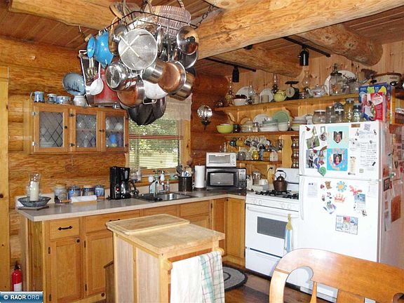 Beautiful hand scribed log cabin on a private scenic island located in Frazer Bay just a short distance from public boat access. Features 892 square feet with free standing wood stove in living room, open to dining area and kitchen. 1 bedroom on main level with loft area used as second bedroom. Small office space, bath with shower, large covered porch and wrap around deck. The property provides panoramic views of Lake Vermilion.