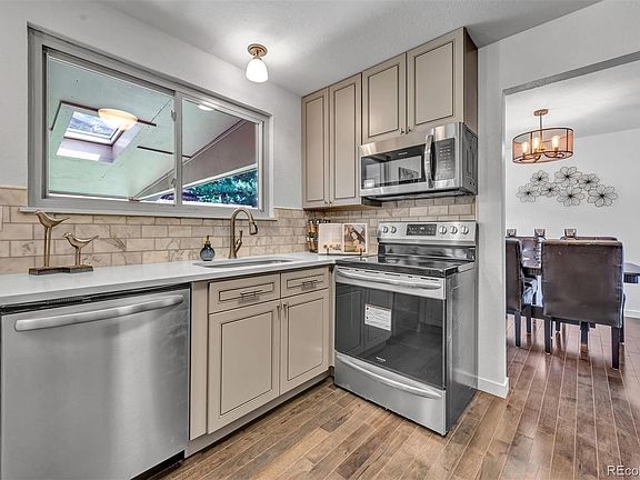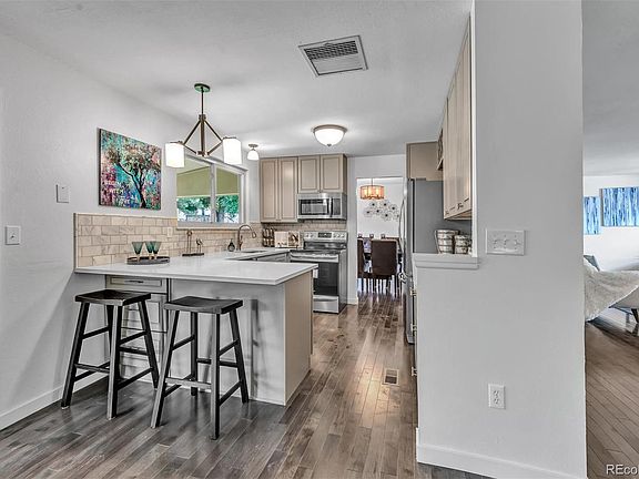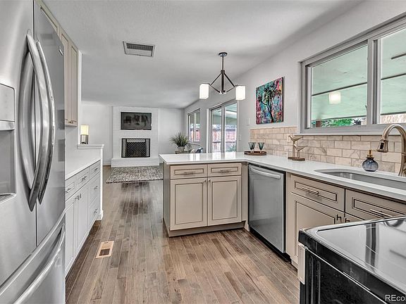 Beautiful top to bottom renovation with modern finishes and located in a quiet established neighborhood. Living room and dining room with large windows for ample natural light, elegant light fixtures and new hardwood floors. The warm and inviting dining room is located right off the kitchen and is the perfect size for casual or formal dining. The gourmet kitchen features stainless steel appliances, quartz counter tops with stone tile back splash and a breakfast bar that opens to the family room with a fireplace. The master bedroom features the well-appointed attached bath with floor to ceiling tiled shower. Also located on the main level are two additional bedrooms, 3/4 bath and laundry room for convenience. The basement features a large open space that is perfect for a second family or game room, two additional bedrooms, a 3rd bathroom and plenty of storage. The outdoor space is equally charming with a large private backyard featuring a covered patio, new privacy fence and sprinkler system. Other features included a new tankless water heater, new furnace and new interior and exterior paint. Located just steps away from Leyden Creek park and convenient to Arvada's Apex center and Stanley Lake.