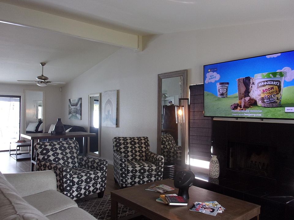 A MUST SEE! Located on a quiet street in the heart of Palm Desert, within walking distance to the mall, Trader Joes, Civic Center Park and El Paseo! Relax on your large covered patio or in your private, heated, Salt Water Pebble Tec Pool/Spa. Pride Of Ownership is easy to see with 18 in. Porcelain tile throughout, except bedroom floors which have new carpet. Upgraded Glass Entry Door, Wood and gas burning fireplace with upgraded Black Granite. Kitchen features Granite countertops and large walk-in pantry. Upgraded countertops and Low-Flow Kohler toilets in all 3 bathrooms. Upgraded walk-in tile shower in guest bath. Inside Laundry, AC unit and Energy-Saving complete house Evaporated Cooling System, new screens on all windows and sliding doors. Easy to maintain Desert Landscaping. New High-Performance, 2-speed, variable pool pump and NO through traffic!