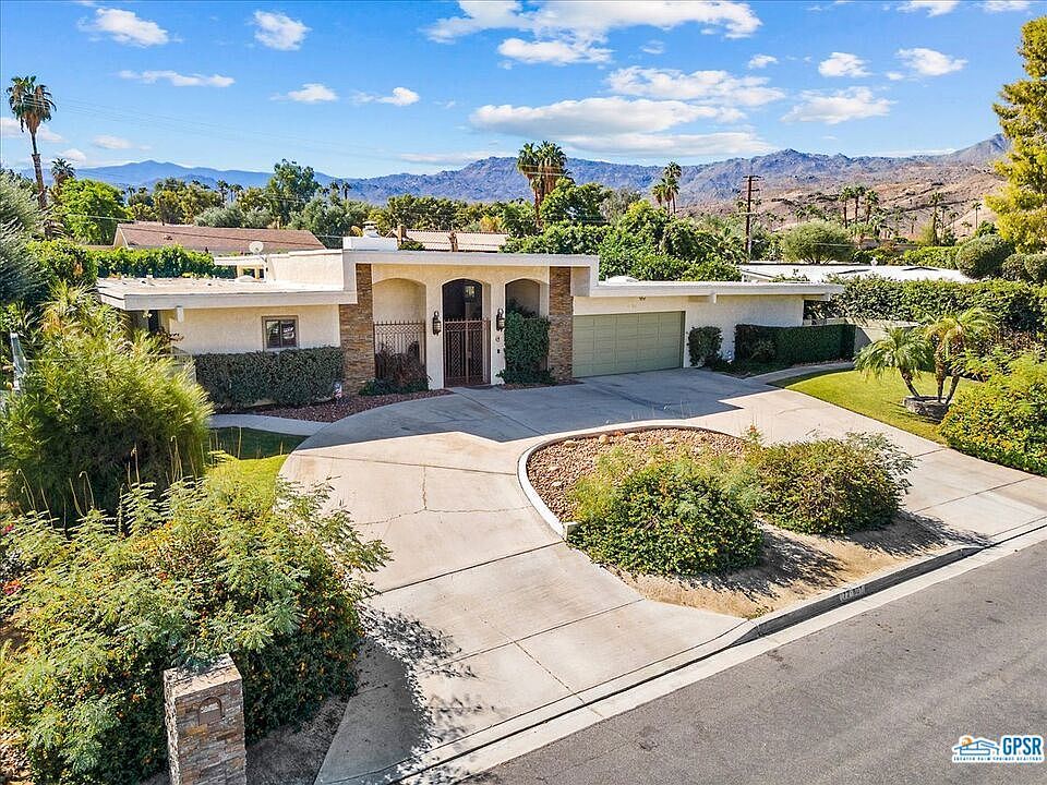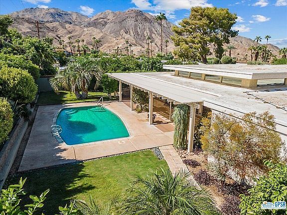 Improved price! Nature surrounds you at this home on an oversized lot, lushly landscaped with fruit trees and other vegetation, visited by hummingbirds, with a 32' x 16' pool in the very private back yard. The well-maintained home is situated on the hillside above El Paseo, in the sought after Washington Charter School neighborhood. The home was designed by renowned mid-century architect Charles Du Bois. There are 3 bedroom suites, all with walk-in closets and direct access to the exterior. The spacious den with fireplace could easily be converted to a 4th bedroom if desired. The layout is stellar. All sliders and windows except the clearstory windows have been updated to dual-pane. The eat in family kitchen has stainless steel appliances and granite counter tops. There is a convenient indoor laundry room with sink, and a fenced pet enclosure on either side of the home. The circular driveway gives access to a 2 car garage with an alcove which supplies plenty of room for additional storage or golf cart stowage. This home must be seen in person to be fully appreciated! Ready for the new owner's vision.