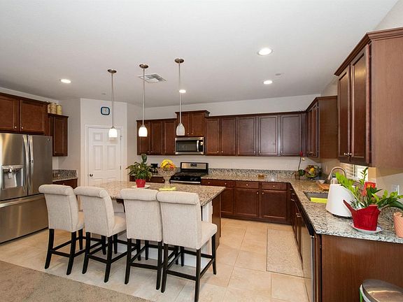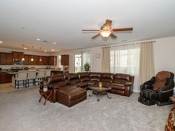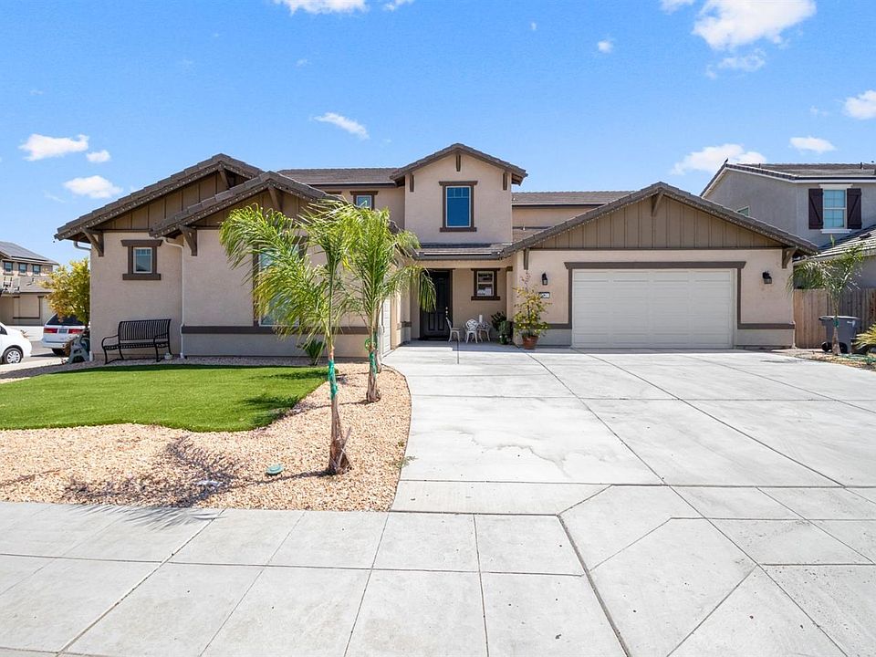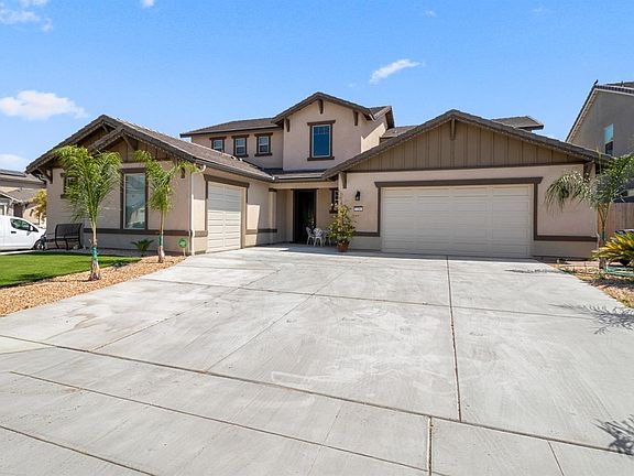 There are so many beautiful details that describe this wonderful home that shows better than new. Just when you first walk into the foyer you sense the grandeur of this large home as you are greeted with deseling light bouncing off the complex grand chandelier, and there are many other upgrades in this 2 year old home. Two Master Bedrooms that are hard to find one upstairs and one downstairs. Upstairs you will find a master bedroom, a loft, a full size bathroom and 2 bedrooms. The Downstairs owner's suite features a larger walk-in closet. Home features another room downstairs, an office/den, or a bedroom, off dining area as well as a half bath for the guests. A huge kitchen with granite countertops, custom cabinets and center island - open to the giant family room. Laundry will be a breeze in this oversize laundry room with a sink. Truly a wonderful 5(4+office) bed & 4(3.5) bath family home. Professionally built covered Patio is done with permits and fitted with designed exterior fans. The home is located on a corner lot with a side gate to quickly access additional parking in addition to a 3 car garage. Garages are finished using extra insulation. Solar System updated with additional panels. Make an appointment for personal viewing.