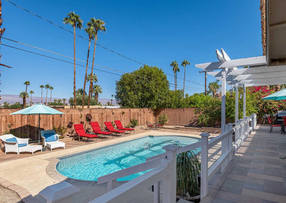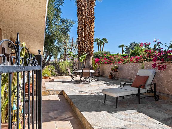 LOCATION, location, LOCATION!!! This tranquil SOUTH PALM DESERT ranch home is situated 1 block from the world-famous EL PASEO shopping district and features elevated PANORAMIC MOUNTAIN VIEWS of the Chocolate Mountains and overlooks a refreshing resort-style SWIMMING POOL. Surrounded by majestic mountains, this 4 BEDROOM HOME offers a relaxing lifestyle, comfortably spacious rooms and indoor/outdoor entertaining space...ideal for a vacation home, weekend getaway or full-time residence. A newer HVAC system adds to the great value!! The GATED FRONT COURTYARD features a spacious FLAGSTONE PATIO surrounded by raised planters, towering palms and views of the nearby Santa Rosa mountains. The interior boasts easy care SALTILLO TILE FLOORS throughout, an inviting family room with separate dining area and an open kitchen...all with SPECTACULAR VIEWS!!!! Lounge poolside by day and gather friends and family for an evening BBQ under the raised covered rear patio. Whatever you decide to do, it will be lovely at this adorable private DESERT RETREAT! Includes all appliances. Furnishings are available outside of escrow! NO HOA.