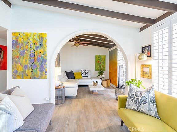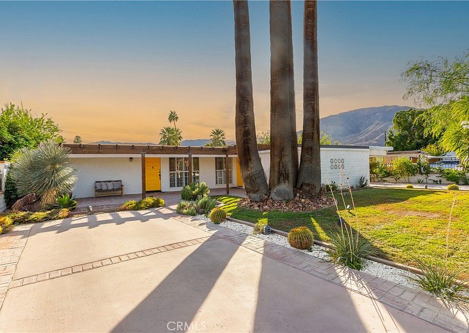Location! Location! Location! Enjoy walking to your favorite shops and favorite restaurants on El Paseo and Hwy 111. Your new home is ideally situated in the heart of Palm Desert but set back from the hustle and bustle on a quiet, peaceful road. This single story Hacienda-inspired home is elegantly styled with today’s contemporary look as well as retaining its adorable original charm! The moment you walk into the home you are greeted with an open concept floor plan with vaulted beamed ceilings throughout. The living room is complete with floor to ceiling windows that bring in the natural light, framed by wood plantation shutters for privacy. As you walk past the living room, you are connected to the family room, outlined with a traditional brick archway, as well as the open dining and kitchen area featuring bright white cabinetry and newer stainless appliances, including built-in refrigerator. In addition to the main residence featuring three spacious bedrooms and two full bathrooms, there is a fourth bedroom with a separate private entrance. The primary suite boasts a lovely en-suite bathroom and spacious closet. Down the hall in the opposite wing of the home are the two additional bedrooms that share a full hall bathroom. The fourth bedroom is complete with a full bathroom, providing an ideal setting for office space, private art studio, additional sleeping quarters for extended family needs, or to generate extra rental income. Step outside into your own private oasis and enjoy relaxing mountain views from your fully covered patio with ceiling fans. Savor that morning cup of coffee outside, as you plan your favorite meal ready to grill later that evening on your built-in BBQ. Both front and backyard boast al-fresco dining areas, creating the most desirable of entertaining options. This one-of-a-kind property offers fragrant bountiful orange and lemon trees, with grassy lawns surrounded by mature landscaping. Near College of the Desert and so much more! Come out and enjoy the Palm Desert lifestyle that awaits.