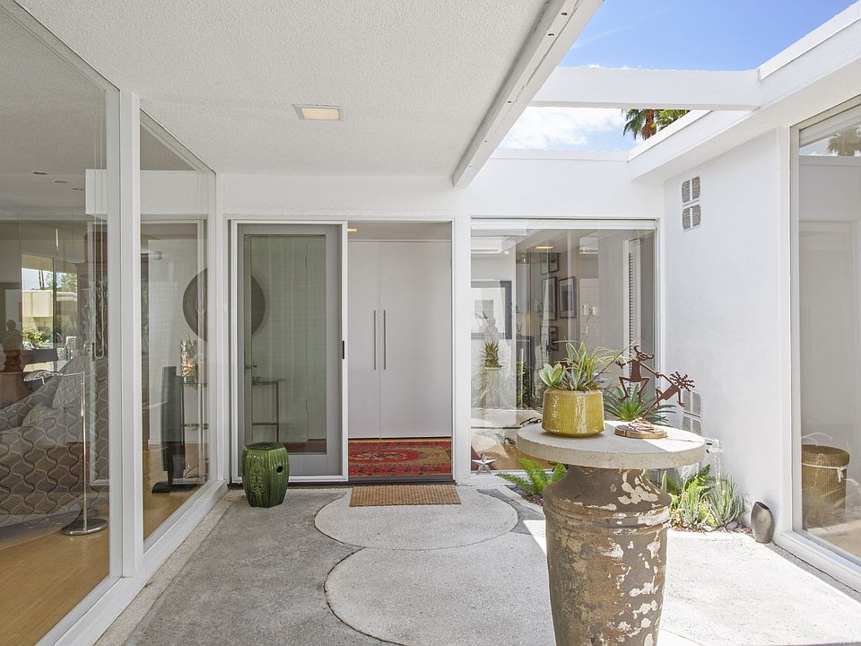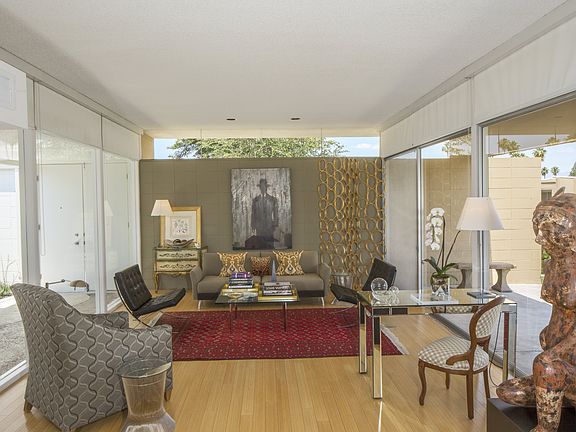 This Krisel designed property has a historical designation and is one of the finest examples of the mid-century modern movement, with clear lines and organic shapes. If you are a fan of floor to ceiling glass, your master suite has just what you are looking for as you peer through your private atrium, across the great room/dining room to the outdoor pool area and beyond to the panoramic mountain views off of your poolside patio. This beautiful property exhibits a spectacular representation of the best that mid-century architecture has to offer. Located within walking distance to Whole Foods, hiking, and the renowned El Paseo shopping district. Urban living at its best!