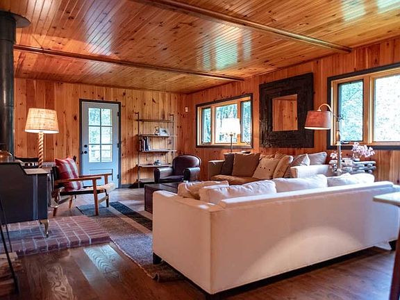 Picture perfect compound with two fully renovated houses on 27 private acres adjacent to 15,000 acres of State Land. The possibilities are endless. Live in one house, rent out the other (owner has $21,000 annual income from airbnb rental) OR use it for family and friends. 82 Dymond Road is the perfect guest cottage: privately sited with 2 bed rooms, wood stove, gourmet kitchen complete with farm house sink and concrete counter tops, very nice wrap around deck, fire pit, wood shed, and more. Stroll down the stone path, passing the stocked pond and small water fall to the main house: a wonderful, completely renovated mountain cabin. Enjoy sitting by the pond or entertain in the BBQ area.The house comes with a large finished attic space that sleeps 6, a private master bed room, open kitchen, living room with wood stove and access to a large deck. From the homes you can hike straight into State Land. The year round stream that meanders through the property add sto the already perfect picture.