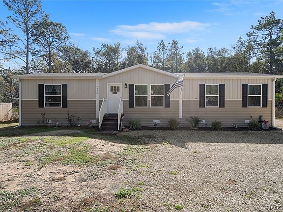 Welcome home to this charming 3-bedroom, 2-bath residence crafted by Clayton in 2022. Situated on a generous 1.32-acre lot surrounded by lush trees, this home offers tranquility without the burden of HOA fees and deed restrictions. The interior has wonderful details, with stainless steel appliances, including a range hood and dishwasher, enhancing the modern kitchen. Cooking and entertaining are a breeze with the expansive kitchen island, complemented by Dura Craft Cabinetry featuring deep drawers for convenient storage. The layout includes a separate dining room area and a pantry closet for added convenience. The spacious master bedroom features an en-suite bathroom, while the two additional bedrooms come complete with walk-in closets. Truly a well-designed, split floorplan including a roomy laundry area adding to the overall functionality of the home. Step outside to the fully fenced backyard, where you'll discover a new 30 x 10 walkout deck, a 10 x 17 utility shed with electric, a 24-foot above-ground pool with a decking and a cozy firepit. There's also a double gated entry to the backyard so you can store your boat and RV. This outdoor haven is excellent for relaxation and entertaining with plenty of extra space to add a shop or garage! This home has underground utilities so no unsightly overhead wires to interrupt the view. Despite the serene country feel, you're just minutes away from town, with quick access to the Homosassa River for boating adventures. Conveniently located near shopping, dining, nature walks, and the Suncoast Parkway, this home offers a perfect blend of rural charm and accessibility to modern amenities.Boundary survey and elevation certificate on file. Sellers are motivated!!