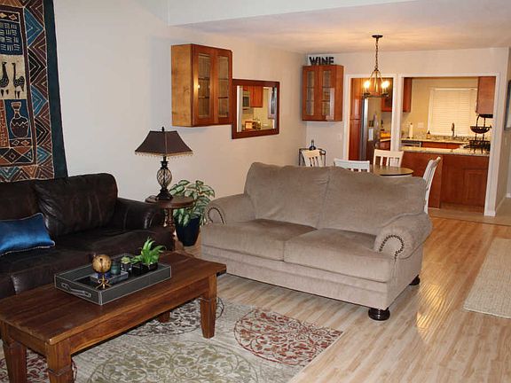 Desirable Palm Desert location in the unique Monterey Sands neighborhood. Remodeled kitchen with new cabinets, granite counter tops, and stainless steel appliances. Bamboo and ceramic tile floors throughout. Two spacious bedrooms. Master has a separate tub and shower and two sinks. Guest bathroom includes a shower over tub and a vanity with one sink. Vanities have quartz counter tops. Shutters cover the patio doors in the living room and master bedroom. Fireplace in the living room. Minutes away from College of the Desert, the McCallum Theatre, and close to El Paseo. ON Fee land! Steps from the pool , pavilion and tennis courts. Enjoy the private courtyard patio. Short term rentals are limited to 30 days or longer. Two car detached garage.