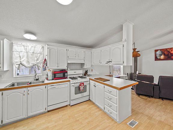 This wonderful property offers the perfect blend of seclusion and convenience. Situated on a generous lot that provides ample space and privacy. Highlights include a bright and open floor plan with vaulted ceilings and large view windows! Spacious kitchen complete with an abundance of cabinet space and breakfast bar. Large primary suite with a relaxing soaking tub. The property truly shines when it comes to outdoor living. Step onto the spacious decks, where you can bask in the tranquility of the surroundings and tall pines. Enjoy the beauty of nature with nearby hiking trails, fishing spots, and recreational areas. This home also offers a detached 2 car garage, is clean and move-in ready!