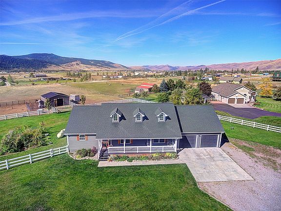 Stunning 2.75-acre property with horse facilities and mountain views, just 25 minutes from Missoula! Welcome to this exceptional Arlee home located in a quiet cul-de-sac neighborhood with nearly 3,000 SF of living space. The home features an open floor plan with stylish updates throughout. A newly built hay barn creates the perfect passthrough from landscaped yard to farm area. The full, finished basement—complete with a cozy pellet stove—provides a spacious family room, additional bedrooms, and can easily be adapted to suit your needs. With both attached and detached garages, there are 4 full parking spaces and abundant storage. Enjoy breathtaking mountain views from the front porch, while the secluded back patio is a private retreat—perfect for gathering around a firepit for evening conversations. Impeccably maintained inside and out, this property is a rare gem in a prime location! For more information, contact Liberty DeGrandpre at 406-885-7743 or your real estate professional.