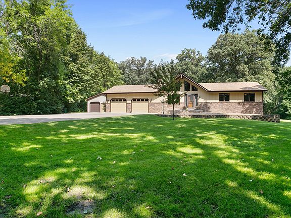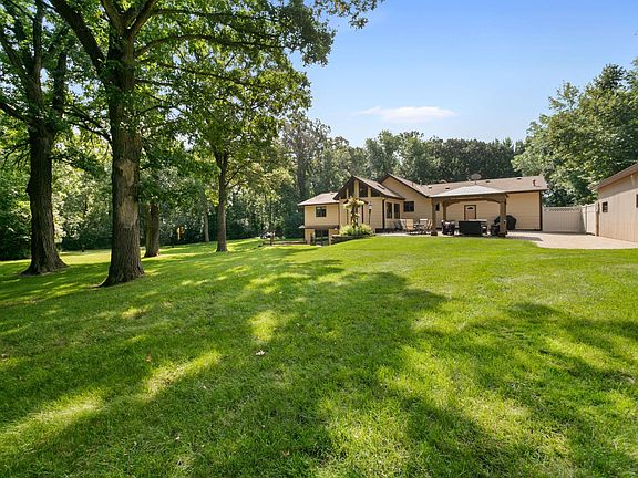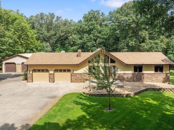 Stunning 5+ acres on a gorgeous setting with lots of trees & a pond. Gorgeous 4 bedroom home features 2 full baths. Dramatic open vaulted main level with beamed ceiling. Lovely formal living room with a beautiful wood burning fireplace greets you as you enter this amazing home. Gleaming wood floors in the kitchen and dining area. Nicely updated and remodeled kitchen with granite counter tops, tile back splash & and lots of custom cabinets. Spacious main floor laundry right off the amazing heated garage that features and finished floor. 3 main floor bedrooms with LVP flooring. Primary bedroom features and walk through to the main floor bath. You will love the main floor sitting room space which features a lovely gas fireplace and LVP flooring. The large lower level is spacious and offers an area for all the family fun and gives you a gas fireplace. A handy wet bar area with custom cabinetry is wonderful feature for entertaining. The lower bath provide you with a great jetted tub and walk-in shower. The exterior patios are amazing with a large pergola. The yard is lush and green thanks to the in-ground sprinkler system. Half of the 30 x 66' shed is heated. The vast concrete driveway leads to the shed and the garage and offers an abundance of parking space. Bathroom in the large shed is not in working condition. Buyer would need to update. There is a large unfinished room on the lower level that could be made into a hot tube room, outside bar, outdoor kitchen, or just a great entertainment area. Home is in immaculate and impeccable condition. This home is move ready to accommodate your family for years to come. Think of the memories you can make!