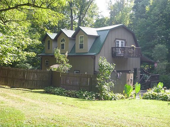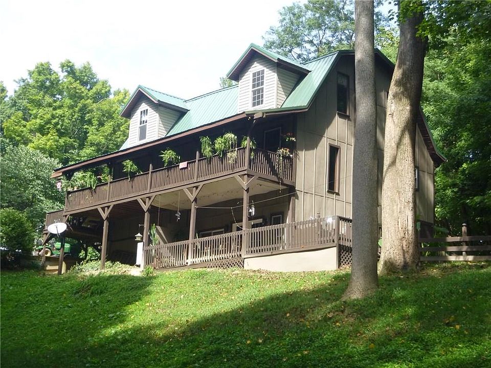 Want privacy? Come see this nature lover's paradise in the woods! Captivating 3BR 2BA design has 2300sqft of living space. Includes gorgeous cathedral ceilings, lovely hickory cabinets, & freshly redone HW floors. Brand new HVAC with heat pump! Newer metal gambrel style roof! Fresh paint. Finished walkout basement with 10' ceilings, wood stove, & plenty of windows. Enjoy the 950sqft of decks to take in the serenity. 2 ½ car garage with 14' ceilings. Good-sized 28x16 insulated outbuilding with 220 electric, loft & wood stove. Wide trails thru 4.5 acres of woods--perfect for 4 wheelers, hiking & collecting firewood. Deer, wild turkey, & all sorts of plants and other wildlife will share the outdoors with you here!