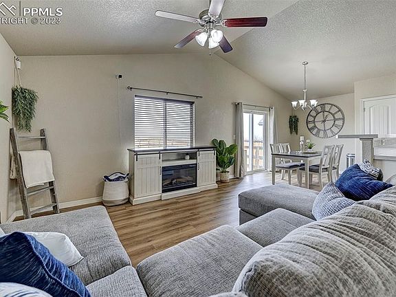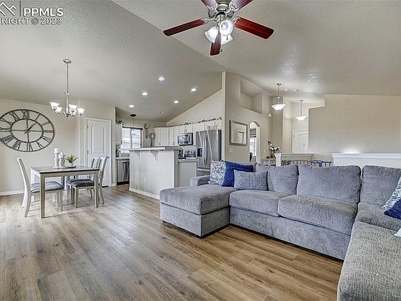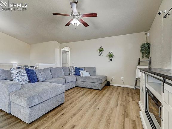 Welcome to this spacious 4 bedroom, 3 bathroom home with a park for a neighbor! You’re greeted by a large entryway and open floorplan. New LVP flooring throughout the main level. The kitchen has been remodeled with quartz countertops and fresh white cabinetry. The main level boasts a large master bedroom with a luxurious 5pc master bath. An additional bedroom is situated on the main level at the front of the house along with a full guest bathroom. In the basement you’ll find a large second living space with a projector and screen. The basement also has 2 additional bedrooms and another full bathroom. Huge backyard with no rear neighbors. AC. Two car garage. Did we mention the park directly across the street?! No work needed here! Move right in and enjoy this home in the heart of Fountain close to Fort Carson, shopping and amenities.