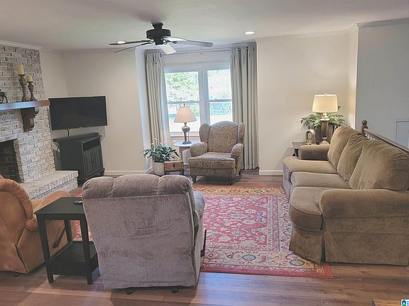 THIS ONE HAS IT ALL, start your mini farm today! 8ish acre OASIS has 70 X 100 pond where you can pick pecans, blueberries, pears, apples, strawberries, rosemary & plant more in the raised gardens! There's chicken coop w covered runs, 20x40 shop w on demand hot water & 20x25 shed too, 54 ft deep well lined w limestone, RV shed w 50 & 30 amp hookup, concrete pad & storage, nice landscaping, covered patio, 2 driveways & that's just the outside! The super clean & nice full brick home on partially finished basement offers 2 car garage, metal roof, lux vinyl flooring, open living, brick fireplace w gas logs, super size master suite w laundry in master bath, custom tile shower, split foyer, large finished room downstairs to use as you please & a fantastic view of the land from covered & screened back porch or covered patio. Close to Birmingham but tucked away, you are going to LOVE it here! This home/property does qualify for low & no down payment options, just ask for more info!